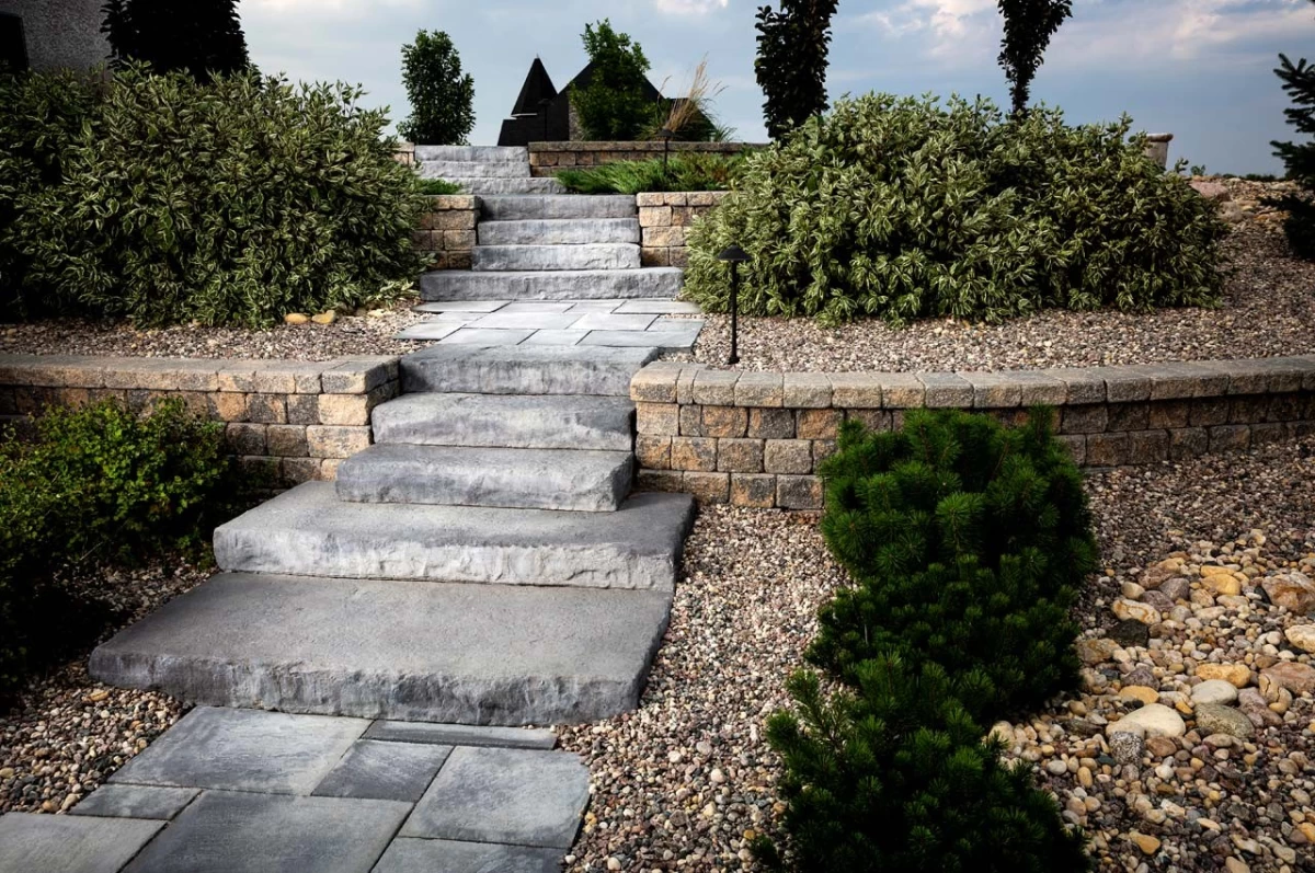 The Rosetta Step Collection gives you the rugged attractiveness of natural stone but combines it with the safety and comfort of uniform rise. Rosetta’s Dimensional Step line is ideal for more formal, sophisticated settings.