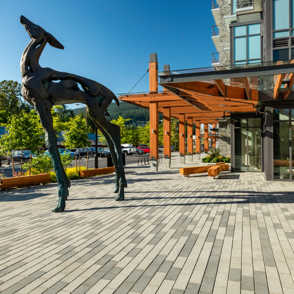 This is the gold standard in commercial paver systems. Multi-directional interlock - shifting prevention measures are located on VS5′s four sides. Its designed to be diagonally symmetrical so the pavers always fit together – regardless of how they are rotated. The underside of the pavers are profiled, in essence creating the fifth side with shifting prevention measures. This “clawing effect” in the pavement bed increases frictional resistance by 54% compared to non-profiled stones. The VS-5 collection has 3 sizes to allow for virtually limitless design options. Special colour options are available.