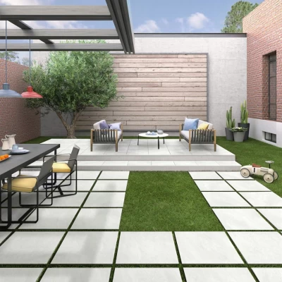 Porcelain pavers are a strong alternative to concrete for landscape paving, roof decks, plazas, and terraces. Structural porcelain pavers offer the same modern styles and colours as interior ceramic tiles, with the benefits of outdoor porcelain: excellent stain, scratch, and frost resistance, plus low maintenance. Their extra thickness delivers superior strength and load‑bearing capacity.