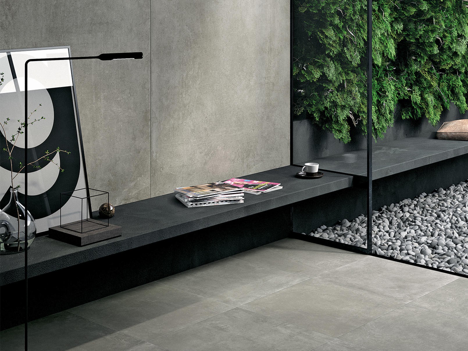 The power of concrete lies in the fact that it is a neutral, exceptionally versatile furnishing material, and in its ability to embody the whole material identity of the ceramic product, transforming it into a container able to bring out the very best in all types of finishes and furnishing elements. Mirage Glocal has fully exploited this characteristic feature of spattled cement, coming up with a light, delicate collection with clean-cut, yet profound textures reminiscent of the material in its most typically original guise, enhanced by a careful selection of subtle details.