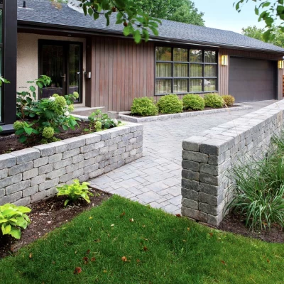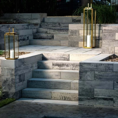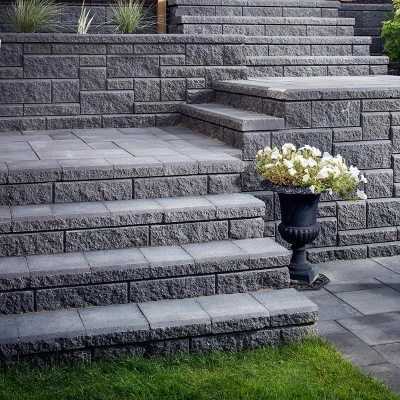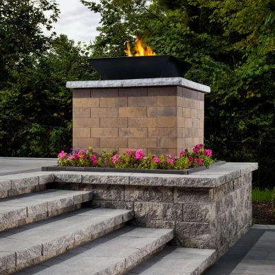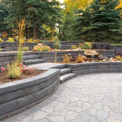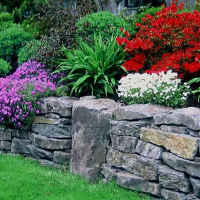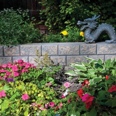 Retaining walls are most often built from the necessity to safely create flat, usable space, above or below the install. Most walls, however, CAN be built to add more than just a functional landscape transition. We carry a large variety of natural stone, and retaining wall blocks so that you can make your own landscaping dreams a reality!