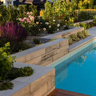 Introducing Architextures™, the ultimate solution for modern landscaping challenges. This large format, contemporary retaining wall from Barkman is engineered to handle the most demanding landscape challenges, reaching heights of up to 8m (26′). With crisp edges and a clean linear appearance, this versatile product effortlessly complements both modern and traditional designs.   Not only is Architextures™ a robust retaining wall, but doubles as a versatile edger. This innovative product is designed to fit seamlessly into the most modern spaces, reflecting and enhancing your contemporary environment. With elegant colors and textures embedded within the block surface, Architextures™ offers a sleek and efficient solution. Plus, its hassle-free installation requires no extra panels, pins, or arduous setup, making it the perfect choice for your landscaping needs. Elevate your space with Architextures™—where functionality meets style effortlessly.