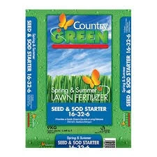 Country Green Seed & Sod Starter 16-32-6 is enriched with plant nutrients for faster growth, giving lawns lush grass and healthy roots. It contains a mixture of nitrogen, phosphorus, and potassium, providing essential macro and micro elements for a healthy lawn. This starter is designed to give your lawn an extra boost by improving germination and promoting growth. NPK = 16-32-6 Nitrogen - Phosphorous - Potassium: underapply rather than overapply - high phosphorous stimulates root development and growth.
