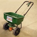 The broadcast-style spreader uses a lazy-susan type wheel to disperse your lawn materials. A simple adjustment on the handle controls the flow rate.