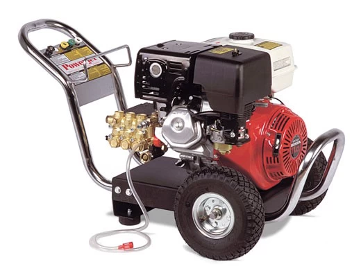 Our 3000 PSI Powerjet pressure washers feature direct-drive Honda motors and industrial quality Interpump water pumps. All units come on a wheeled cart and include wand, 50′ of hose, 3 high pressure nozzles and one soap nozzle.